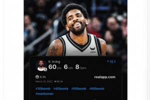 在2022年的3月17日,欧文得到60分,篮网队史单场比赛新纪录。