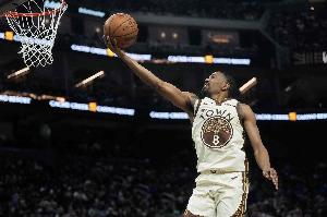 勇士球员梅尔顿上半场打得不错,在进攻端还是球队最稳定的一个持球点,并且三分手感也不错。