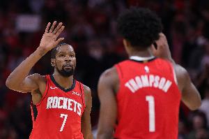 赛后杜兰特接受采访,谈到阿门补篮绝杀,他说:“这简直是一场过山车般的比赛!我的意思是,迈阿密整晚都打得很好——对我们来说,这是一场进攻大战。我喜欢进攻型比赛,而我们今天投进了16个三分球,但真正关键的是阿门。真的,就是那一刻,他不知道从哪冒出来(绝杀)了,他还抢下18个篮板,砍下24分,我为他感到骄傲。”