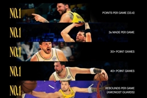 东契奇场均分/三分数/30+40+场次皆Top1 湖人官方:数据不会说谎
